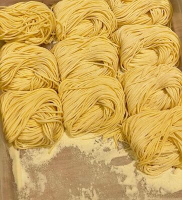 - Trong thời gian nghĩ sẽ giúp khối bột tạo được mạng lưới gluten giúp sợi mì dai và ít gãy hơn